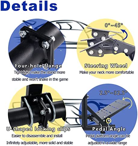 High Quality Material: The racing simulator cockpit is made of high strength alloy steel, very strong and stable, so that you won’t easily shake during intense gaming, allowing you to have a comfortable gaming experience. The stand is coated with black anti-rust paint to protect the stand from corrosion and will last for many years. The bottom of the stand has eight rubber non-slip pads that grip the ground firmly, keeping you smooth, safer and more stable during gaming.