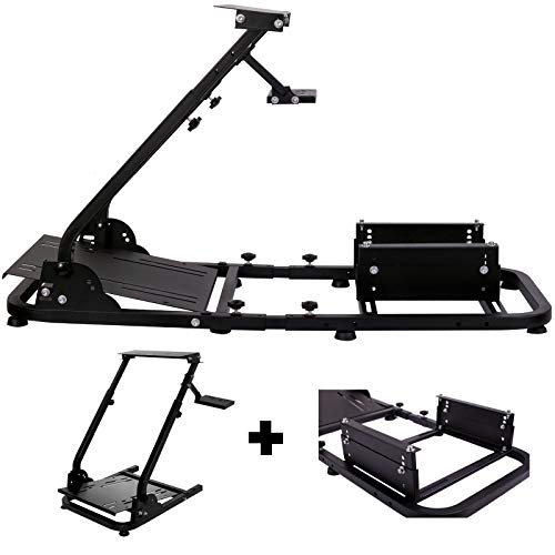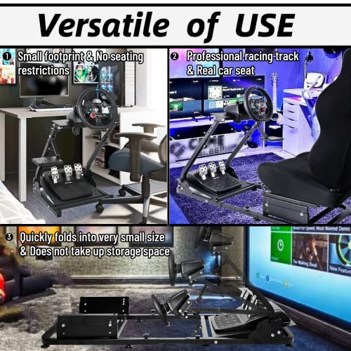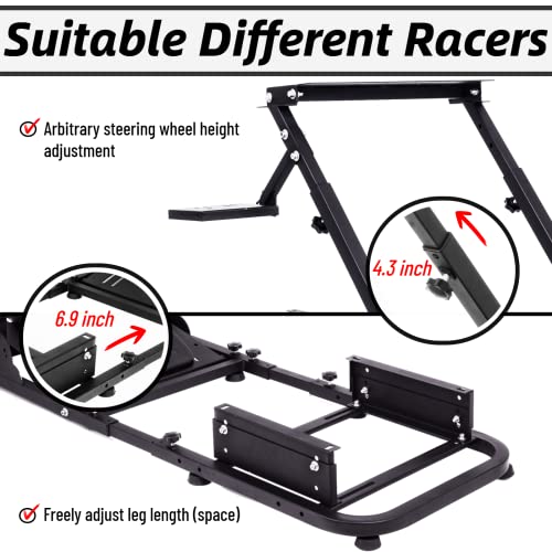 【High-Quality Material】The racing wheel stand is made of solid alloy steel. Four huge rubber feet are installed at the bottom of the race wheel stand to ensure that no movement occurs in games.