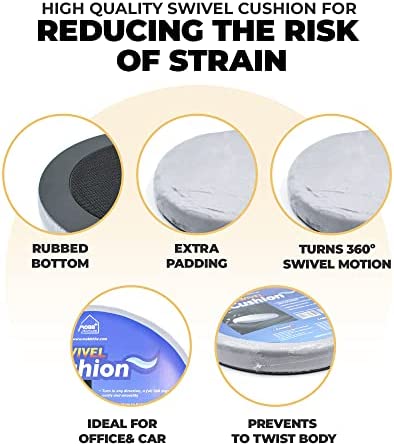 Many times a user with limited mobility must have adjustments made to a car to allow entry into the car. When used in a car, swivel seats allow the user to sit with their legs extending from the car and then use the seat to rotate the legs into the car. Having the swivel seat at a table or desk allows users to correctly face their body toward the table or desk and to easily reach for items without having to turn the lower back or hips.