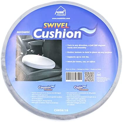 The Swivel Seat Cushion turns a full 360 degrees for improved positioning. The padded top provides a comfortable surface for users that sit for prolonged periods of time. The rubber bottom of the cushion prevents the cushion from sliding out from under the user as they sit, stand, or shift their body weight.