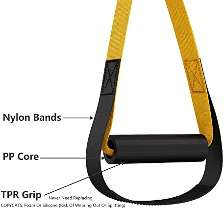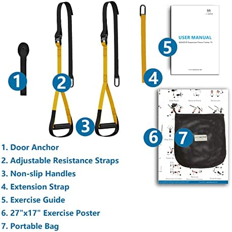 This ProProo trainer is a complete bodyweight gym straps. Supports highly metabolic compound exercises, and assisted exercise variations for full workouts for every skill level. This home gym trainer is one of the most affordable on the market. Most importantly, this trainer is robust and flexible. Designed to anchor to pull up bars, beams, rafters, outdoor park structures, doorways, even tree limbs…