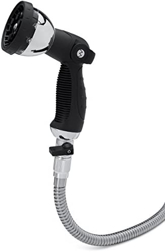 EXTREME DURABILITY- Constructed from the highest quality Zinc Alloy metal and ABS plastic, this 10-way sprayer withstands outdoor weather conditions without breaking, rusting, or corroding. Topped with a comfortable strong TPR rubber coating, the sprayer is drop resistant and will last for years. This leakproof sprayer comes fitted with rubber washers for a water-tight seal connection.