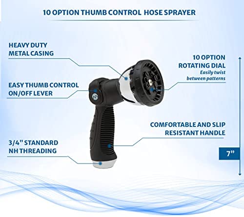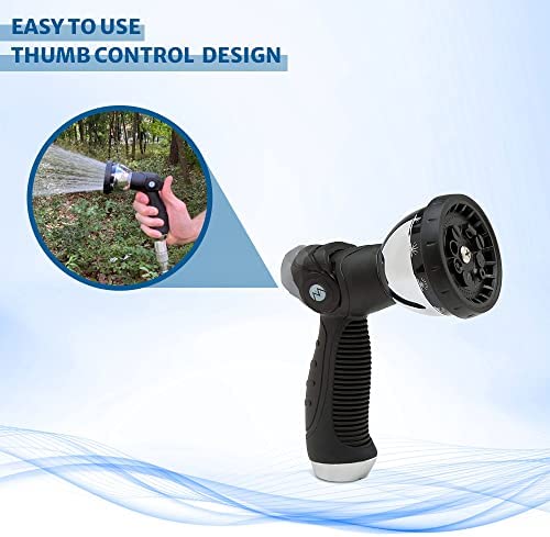 THUMB CONTROL DESIGN- Outfitted with an anti-slip, comfortable and easy to grip soft rubberized handle for the ultimate watering experience. The thumb control ON/OFF lock allows for easy use without straining your hand on a trigger.