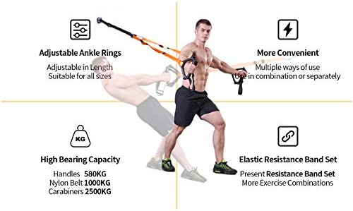PREMIUM QUALITY EXERCISE EQUIPMENT. The bodyweight training system comes with industrial-strength polyester material webbing, which can withstand up to 800 pounds. Upgraded non-slip grips keep you from sliding, even when your hands are sweaty. A versatile anchor allows you to set up training straps virtually anywhere anytime. Secure buckles enable the user to have strap length adjustment for movement between positions and exercises.