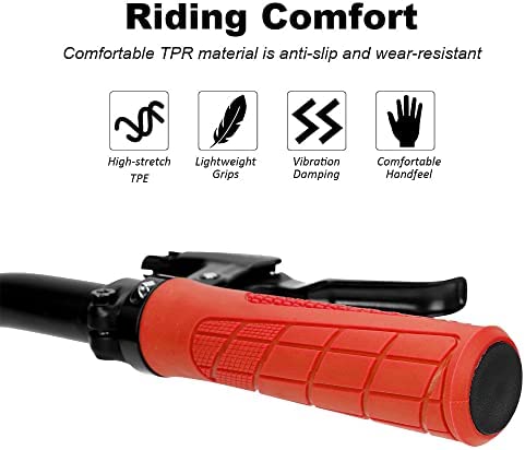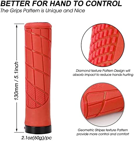 [WHAT YOU GET] The bike handle grips come with a pair,open the package you will see the grips with bright color and 2 coarse textured patterns (grips without strong rubber smell)durable quality and comfortable hand feeling for all lever cyclist to riding in different roads.((End plugs and install tool included)
