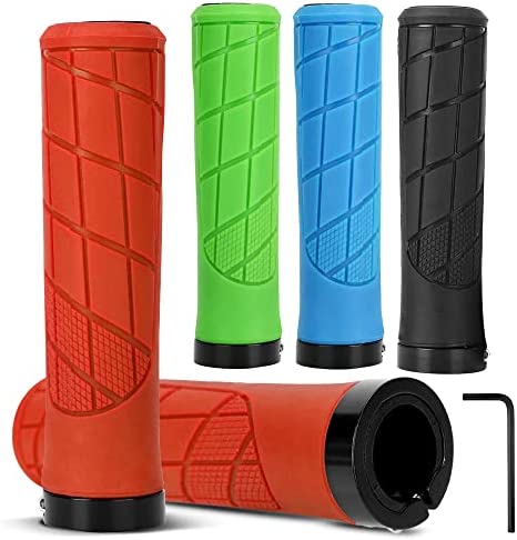 [DURABLE & RELIABLE] Made from quality water-resistant and soft non-slip rubber that provides all-weather protection on the grips. The firm aluminium single locking bolts correct the position of the grip and keep the grips tight without loosening and slipping,unique textured patterns provide a sure,secure grips on the bars even with your wet,sweaty hands(Someone ride withou gloves)