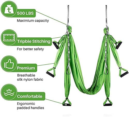 【Quality Fabric】It is made of durable, ultra soft nylon taffeta tested load bearing up to 600 lb. We use comfortable fabric sliders and soft-padded handles on our swings to protect your skin and hands. Our yoga hammocks are sure to exceed your expectations of what it means to exercise in comfort and luxury.