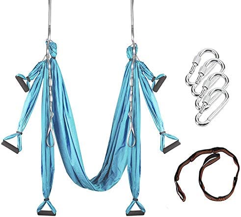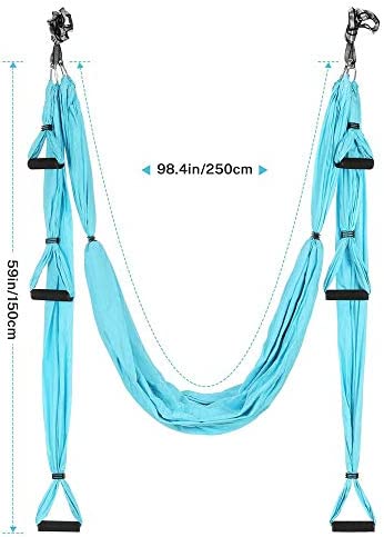Adult Yoga Swing Kit – Hanging Aerial Yoga Equipment System for Body Inversion, Flexibility and Exercise – Parachute Fabric Hammock Sling with Rubber Grip Handles Carabiners – Hammock Strap