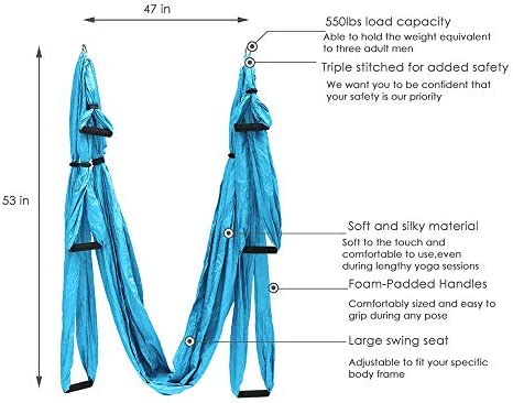 * DO NOT attempt to hang the yoga swing on a structure you are uncertain about bearing your full weight. Hanging height is not more than 6 inches from the floor, to prevent accidentally fall injuries.