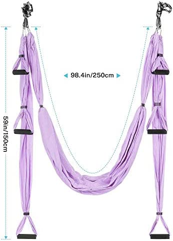 DURABLE AERIAL YOGA SWING – Aerial flying yoga swing hammock is made of studio quality silk nylon fabric. Anti gravity yoga hanging kit is strong enough to bear the weight up to 600 lbs.