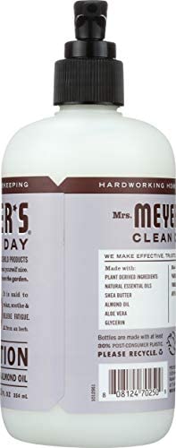 Mrs. Meyer’s Clean Day Lavender Hand Lotion is specifically made to moisturize dry hands without leaving behind a greasy residue, while also providing a special, singular scent for your home. Lavender scent has long been prized for its original and clean floral scent. Such a pretty and reassuring herb! Apply after using Mrs. Meyers Hand Soap to maintain those soft, hard- working hands. Use as Lavender body lotion or apply to your feet and put on your socks for an overnight dry foot remedy. Lotion made with shea butter, almond oil, essential oils, and other thoughtfully chosen ingredients that soften dry hands. Best of all, our garden-inspired hand lotions are made without parabens or formaldehyde and always a cruelty free formula. A Leaping Bunny Certified product. Also available in other garden-inspired scents and products such as hand soaps, laundry detergents, candles, and so much more! Mrs. Meyer’s – Rooted in Goodness.