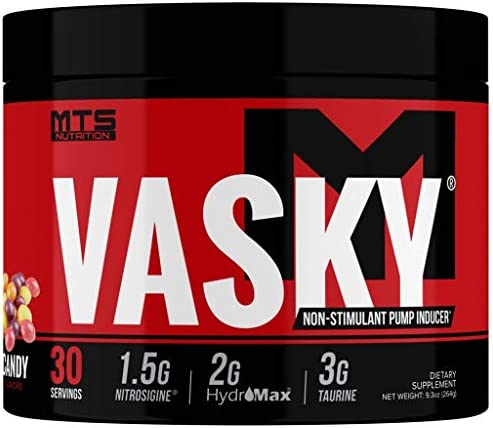 MTS Nutrition VASKY is the SCIENTIFICALLY-DOSED leader in non-stimulant pre-workout meant to be taken as a standalone or with your favorite stimulant based pre-workout such as MTS Nutrition CLASH or Ruckus. VASKY contains Nitrosigine which enhances nitric oxide for an extended period of time, along with HydroMax Glycerol which promotes hyper-saturation of the muscles. With Taurine, added for its positive performance and volumizing effects, VASKY is guaranteed to help you achieve the greatest pumps and best workouts you’ve EVER had!