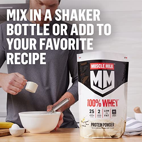 VERSATILE AND EASY-TO-MIX – Muscle Milk 100% Whey Protein Powder dissolves easily in water; just mix 1 scoop into 8 fluid ounces of water using a shaker bottle. Shaker bottle sold separately. Also add to recipes when you are looking for a protein boost.