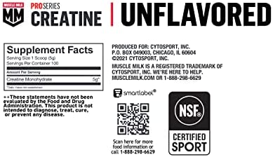 Muscle Milk Pro Series Creatine Powder Supplement, Unflavored, 1.1 Pound, 100 Servings, 5g Creatine Monohydrate, NSF Certified for Sport, Packaging May Vary