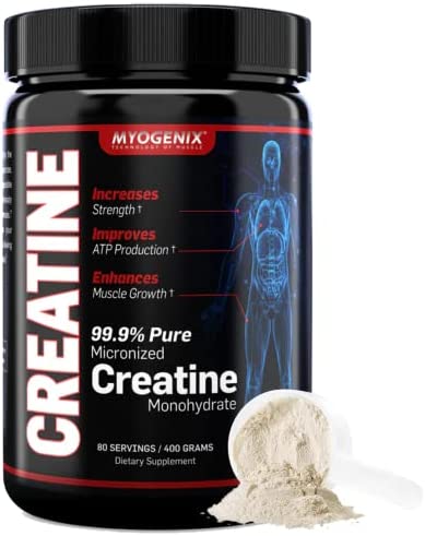 HomeSupplementsMyogenix Creatine Monohydrate for Muscle Growth | Creatine Powder Nutritional Supplement | Increases Strength | Improves ATP Production | Only Pure Ingredients | 80 Servings / 400G