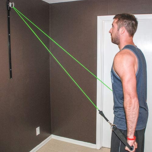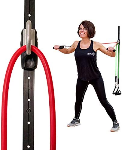 The Space Saver Gym (cable workout wall mount or resistance band wall mount system) by Dunn Concepts LLC is a sturdy and functional piece of exercise equipment for home or the office. It can accommodate most elastic tubing resistance bands women including heavy resistance bands metal clip, body bands, or suspension straps. This resistance band wall mounts should be secured to a wall stud with the supplied wood screws or it can be fastened to a masonry wall with appropriate anchors (not supplied). Great alternative to shoulder pulley for physical therapy over the door. The Space Saver Gym (wall anchor for resistance bands or resistance band wall anchors) by Dunn Concepts LLC is the perfect addition to any home ligas para hacer ejercicio, office, or gym to help maximize resistance training workouts without taking up a lot of space. The Space Saver Gym is easy to put together and attach to the studs in a clean flat wall and just as easy to use for a full body workout. Our resistance bands wall anchor is designed to use with resistance bands that attach to an adjustable rail car that can be moved to any height for any user or workout desired. The easy resistance band attachment and detachment makes it simple to change the level of resistance you want to incorporate into your workout whether it be for lighter toning or muscle building. This unique piece of strength training equipment accommodates most elastic tubing workout bands resistance and allows you to perform hundreds of workouts. When mounted vertically, this at home gym provides 16 different levels. Easily slide the rail car in 2 inch increments to adjust the height with the touch of a button. Each car is designed for a single elastic tubing resistant bands for exercise bands mount. Includes: 1 3-foot sturdy aluminum mounting brackets, 1 sliding rail car, 10 – 2-inch screws.