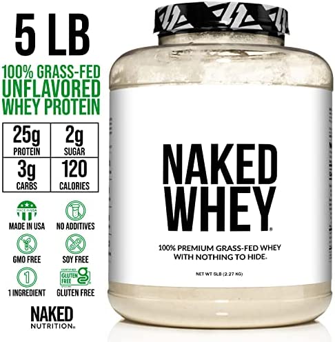 Naked WHEY 5LB 100% Grass Fed Unflavored Whey Protein Powder – US Farms, Only 1 Ingredient, Undenatured – No GMO, Soy or Gluten – No Preservatives – Promote Muscle Growth and Recovery – 76 Servings