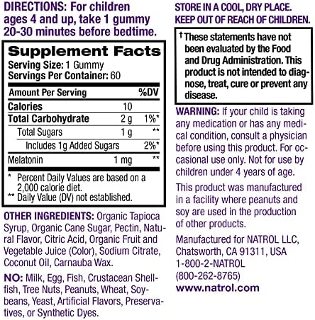 Clean Ingredients: Natrol Melatonin Gummies are 100% Drug-Free, non-GMO, gluten-free, vegetarian and contain no corn syrup. Free of artificial flavors, sweeteners and preservatives, and synthetic dyes.