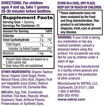 Drug Free: Natrol Kids Melatonin is drug-free and non-habit forming, so you can feel good about giving it to your kids