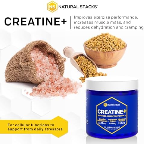 HomeSupplementsNATURAL STACKS Creatine Monohydrate Pills – Gluten Free Vegan Creatine Capsules | Strength, Muscle Growth & Performance – Enhanced Absorption Formula -120 Capsules