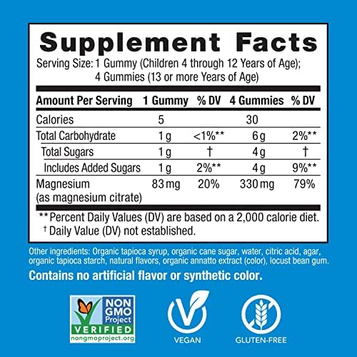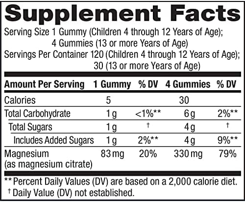 A DAILY SUPPLEMENT: Children ages 4 to 12 years may chew one gummy per day before bedtime or when just waking up in the morning; adults and teens may chew up to four vegan magnesium gummies every day