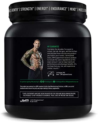 About the JYM Pre Workout Powder: Supported Goals: Muscle Growth – Strength – Energy – Endurance – Mind. What It Is: A precise blend of 13 ingredients that we have used for decades in the gym, to help enhance training performance and promote sustainable results. Pre JYM provides the “kick” during workouts that hard-training individuals desire without the use of heavy stimulants. Caffeine, one of the most widely studied performance-enhancing supplements in the world, is the only stimulant present in Pre JYM. Caffeine is now believed to not only help provide performance benefits but also support a host of health benefits as well. The other ingredients work to help support mental focus, muscular endurance, and strength. With Pre JYM, you’ll experience lasting energy and a noticeable boost in performance during your hardest, longest training session, without any crash. What Sets It Apart: We provide full disclosure of the product’s 13 ingredients – 15 if you consider the BCAAs as three separate amino acids. This is a departure from most pre-workouts that mask ingredients through “proprietary blends” (meaning you don’t know exactly how much of each ingredient is in the product). Other products may only provide a few of the critical ingredients shown to truly help maximize performance and results. Just look at the 25-gram serving size Pre JYM scoop – it’s way bigger than the typical 5-10-gram scoop of most other pre-workouts. It’s literally impossible to put all the ingredients that we recommend to help optimize your workout in a serving as small as that.
