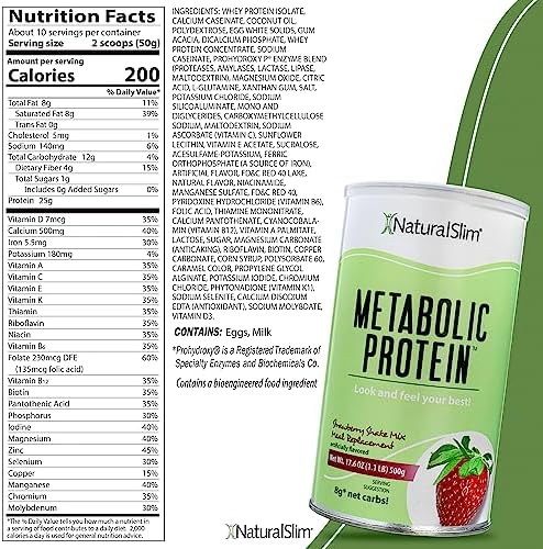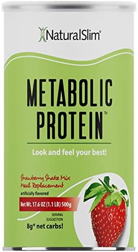 NaturalSlim Metabolic Whey Protein Powder Strawberry – Low Carb, Meal Replacement Shake w/ Vitamins, Minerals & Amino Acid L-Glutamine | Great Taste And Very Filling Protein Shake, 10 Servings, 17.6oz