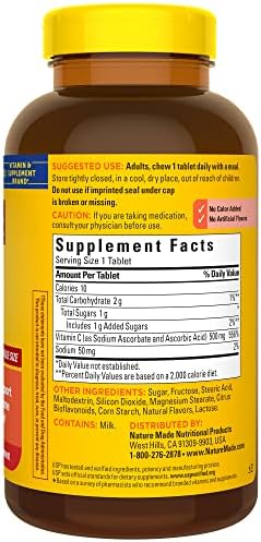 These Nature Made chewable Vitamin C tablets have no color added and no artificial flavors