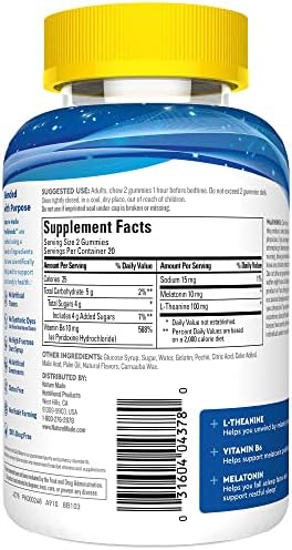 WITH VITAMIN B6 AND L-THEANINE: Also provides Vitamin B6, an essential vitamin that helps support natural Melatonin and Serotonin production in the body; and L theanine, an amino acid that helps you unwind by relaxing your mind