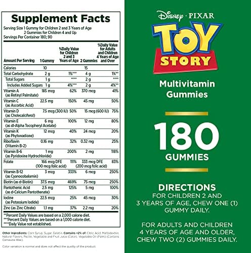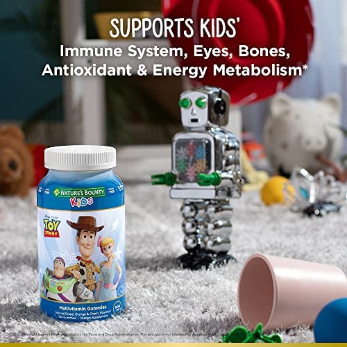 Pack nutrients into playtime with Nature’s Bounty Disney and Pixar Toy Story Kids Multivitamin Gummies. They’re packed with the nutrients kids need to help grow up as strong and creative as their favorite Toy Story heroes. Just two gummies give children ages 4 and up as much: Vitamin A as 13 cups of broccoli, Vitamin C as ⅔ of an orange, Vitamin D as 6 cups of milk, and Vitamin B6 as 4 green, shiny avocados. (2) You’ll find 13 key nutrients that support kids’ Immune System, Eyes, Bones, Antioxidant Health & Energy Metabolism. (1) Plus, it’s free of the stuff you may not want: No GMO’s, No Gluten, No Wheat, No Milk, No Lactose, No Artificial Flavors & Artificial Sweeteners, No Peanuts, No Egg, No Soy, No Fish, No Sesame, and 1g of sugar per gummy. Each children’s supplement is backed by 50 years of trusted, guaranteed quality. Our trusted products are always backed by science and made with only the purest ingredients that are laboratory tested.