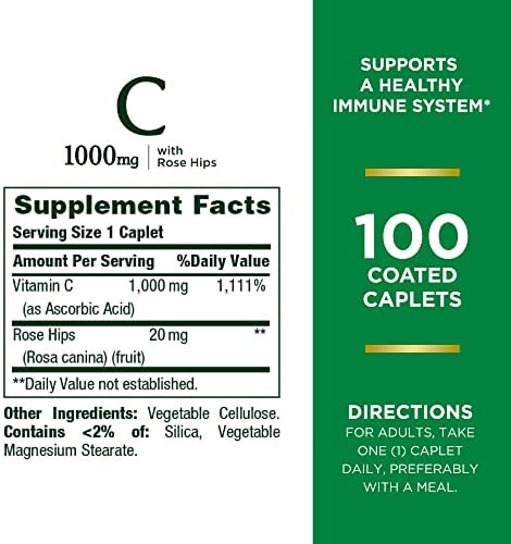HomeSupplementsNature’s Bounty Vitamin C + Rose Hips, Immune Support, 1000mg, Coated Caplets, 100 Ct