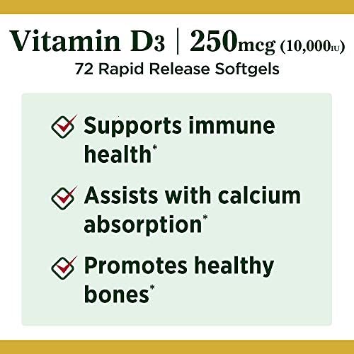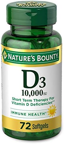 Size: 72 count. A daily dose of Vitamin D3 by Nature’s Bounty is a simple and effective way to show your immune system some love.* That’s because Nature’s Bounty Vitamin D is an essential nutrient for immune support.* By assisting with calcium absorption, Nature’s Bounty Vitamin D3 also helps maintain healthy bones in adults and it provides the benefits of the natural sunshine that living and working indoors can deprive us.* Vitamin D Softgels from the vitamin experts at Nature’s Bounty combine science, nature and 50 years of expertise and innovation to provide the easiest way to increase your daily intake of this important nutrient. When wellness is everything, the vitamin experts at Nature’s Bounty have everything you need to get there.Our rapid release Vitamin D3 Softgels are non-GMO, gluten- and sugar-free, and contain no artificial colors, or sweeteners.