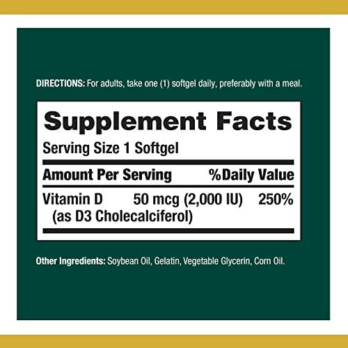 Size: 240 count. A daily dose of Vitamin D3 by Nature’s Bounty is a simple and effective way to show your immune system some love.(1) That’s because Nature’s Bounty Vitamin D is an essential nutrient for immune support.(1) By assisting with calcium absorption, Nature’s Bounty Vitamin D3 also helps maintain healthy bones in adults and it provides the benefits of the natural sunshine that living and working indoors can deprive us.(1) Vitamin D3 Softgels from the vitamin experts at Nature’s Bounty combine science, nature and 50 years of expertise and innovation to provide the easiest way to increase your daily intake of this important nutrient. When wellness is everything, the vitamin experts at Nature’s Bounty have everything you need to get there. Nature’s Bounty is committed to safety and purity in all our supplements. Our rapid release Vitamin D3 Softgels are non-GMO, gluten- and sugar-free, and contain no artificial colors, or sweeteners. (1)These statements have not been evaluated by the Food and Drug Administration. This product is not intended to diagnose, treat, cure or prevent any disease.