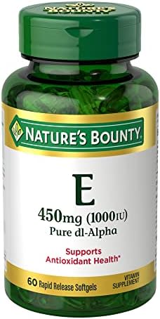 Nature’s Bounty 1000 IU Vitamin E supports antioxidant health and offers immune support for overall wellness. (1) An essential nutrient, Vitamin E contains antioxidant properties that help fight free radicals in the body. (1) Free radicals may contribute to the premature aging of cells. The product of 50 years of dedication to creating high-quality supplements backed by science, Nature’s Bounty Vitamin E softgels contains Vitamin E as dl-Alpha Tocopherol Acetate and are Non-GMO. Each pack contains 60 easy-to-use softgels. (1) These statements have not been evaluated by the Food and Drug Administration. These products are not intended to diagnose, treat, cure, or prevent any disease.