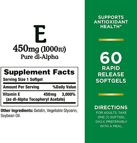 HomeSupplementsNature’s Bounty Vitamin E 1000 IU Softgels, Supports Antioxidant Health & Immune System, 1 Pack, 60 Softgels