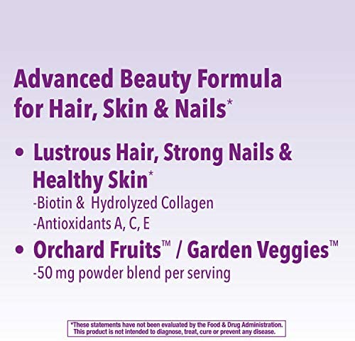 Made with food-based Orchard Fruits & Garden Veggies powder blend (50 mg per serving.)
