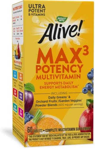 HomeSupplementsNature’s Way Alive! Max3 Potency Multivitamin, Support Daily Energy Metabolism*, 60 Tablets