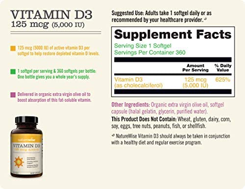Get your daily dose: The Vitamin D Council recommends 5,000 IU Vitamin D daily for adults to achieve and maintain optimal levels. Supports the body’s ability to maintain good bone health