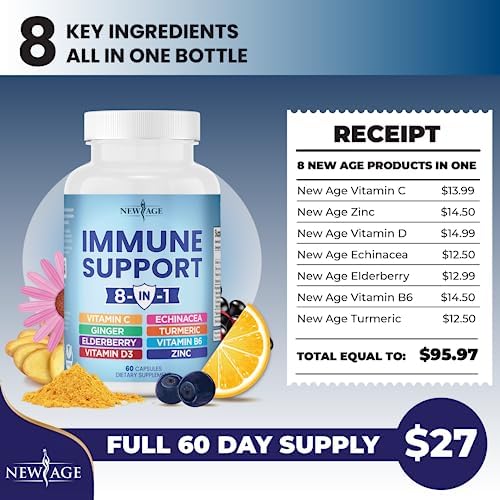 Packed with Vitamin C & Vitamin D – 100mg of Vitamin C Supplement and Vitamin D 5000 IU which are both known to be high in antioxidant support and essential vitamins that your body is unable to produce naturally. Vitamin C with Zinc for Adults is more than the average Vitamin C Capsule or Vitamin D Gummy. New Age 8-in-1 gummies make it effortless to get the immune supporting benefits you need.