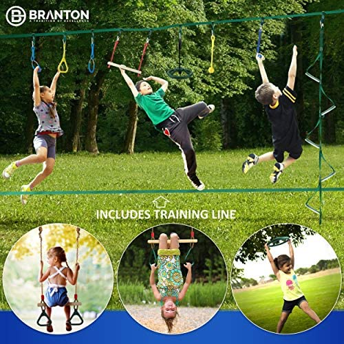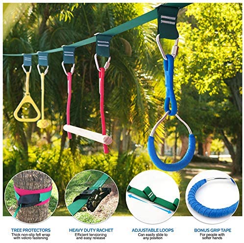HomeApparatusNinja Obstacle Course Deluxe – Ninja Kit with Most Complete Accessories for Kids, 2 Slacklines (42FT Double Slackline)