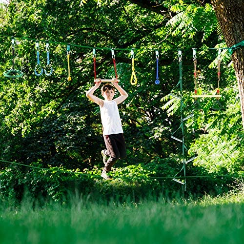 Ninja Obstacle Course Deluxe – Ninja Kit with Most Complete Accessories for Kids, 2 Slacklines (42FT Double Slackline)