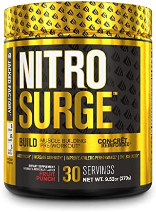 Experience Explosive Energy, Strength, & Focus: This preworkout powder with creatine is formulated with high-quality, trademarked ingredients including Con-Cret Creatine HCL which provides an efficacious amount of creatine in a much smaller dose than creatine monohydrate, preventing bloating and other undesirable gastrointestinal effects. As a flavored creatine pre-workout, Nitrosurge Build delivers peak performance, laser focus, and intense pumps every single training session.