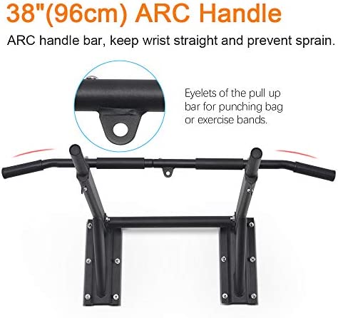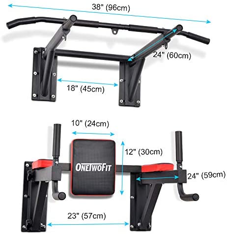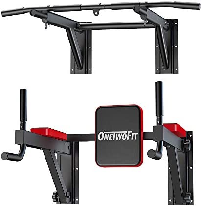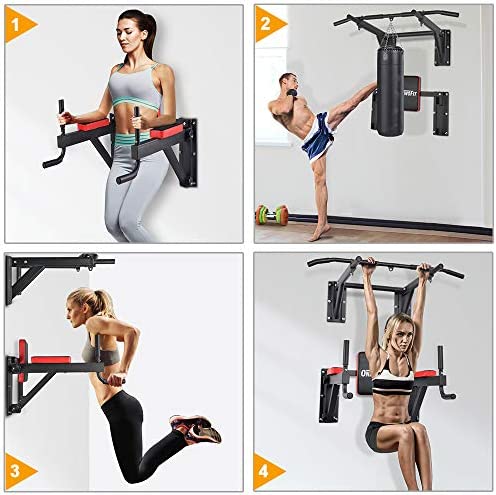 ONETWOFIT Wall Mounted Pull Up Bar Multifunctional Chin Up Bar Power Tower Exercise Bar Set for Indoor Home Gym Workout Strength Training Equipment Fitness Dip Stand Maximum Weight 330 Lbs
