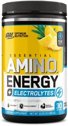 Reach for Optimum Nutrition Amino Energy Plus Electrolytes Energy Drink Powder anytime you need a boost of energy, muscle recovery and electrolyte support, whether you’re lifting, running, biking, hiking, playing team sports, or just running your daily errands. Each two-scoop serving of this anytime energy powder contains 100mg of caffeine from natural sources to support energy and focus, 5g of essential amino acids – including BCAAs – to aid muscle recovery, and electrolytes to replenish those lost in sweat and boost hydration. Use as a pre-workout powder, postworkout recovery drink, or use this energy drink mix anytime you need a morning or afternoon pick-me-up. With zero sugar and only 5 calories per serving, it’s a healthier and more functional option than sugary energy drinks. This 10.5-ounce package contains 30 servings of electrolyte powder in a delicious Pineapple Twist flavor. Optimum Nutrition Amino Energy and Electrolyte Drink Mix offers the same amino blend as our regular Amino Energy Drink Powder with the addition of electrolytes such as potassium, sodium and magnesium to help support muscle function and fluid balance.