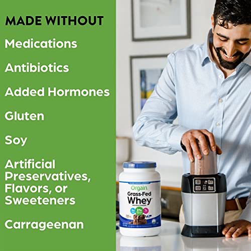 Orgain Whey Protein Powder, Creamy Chocolate Fudge – 21g Grass Fed Dairy Protein, Gluten Free, Soy Free, No Sugar Added, Kosher, No Added Hormones or Carrageenan, For Smoothies & Shakes – 1.82lb