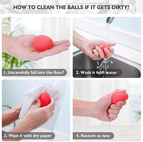 🥚SAFE AND DURABLE FOR BOTH CHILD & ADULTS – The Hand Exercise Eggs are made of a thermoplastic rubber (TPR), but do not have a strong rubbery odor and are washable in plain water. Completely safe for kids and adults. You might find the egg gets a little bits of sand and lint when it falls into the floor, never mind, it is very easy to be cleaned by washing it under water.