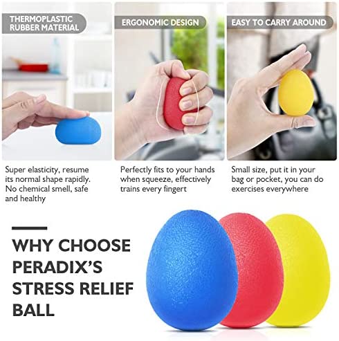 Peradix Hand Grip Strength Trainer, Stress Relief Ball for Adults and Kids, Wrist Rehab Therapy Hand Grip Equipment Ball Squishy Tools – Set of 3 Finger Resistance Exercise Squeezer