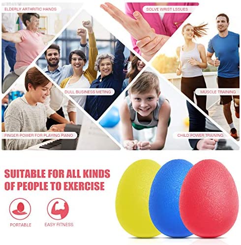 🥚MAKE EXERCISE SIMPLE – These colorful stress relief balls in three levels of progression (15kg- 25kg- 30 kg resistance) can improve finger and grip strength for athletes (rock climbing enthusiasts, fitness, tennis, baseball, boxing, tennis, golf and shooting) and musicians (guitar players, bass players, pianists and violinists). It can also relieve some of the tension and anxiety.