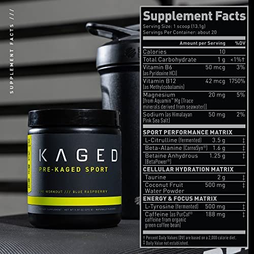 HomeSupplementsPre Workout Powder; Kaged Muscle Pre-Kaged Sport Pre Workout for Men and Women, Increase Energy, Focus, Hydration, and Endurance, Organic Caffeine, Plant Based Citrulline, Blue Raspberry