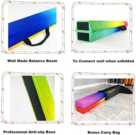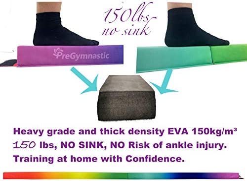 💗A BEAM WILL NOT SINK UNDER WEIGHT 150 LBS💗:This folding beam is made of heavy grade and thick density EVA 150kg/m³ which is firmer and holds up enough for young athletes to practice on with confidence for skills development at home every day and supports your gymnast from level 1 to 10.